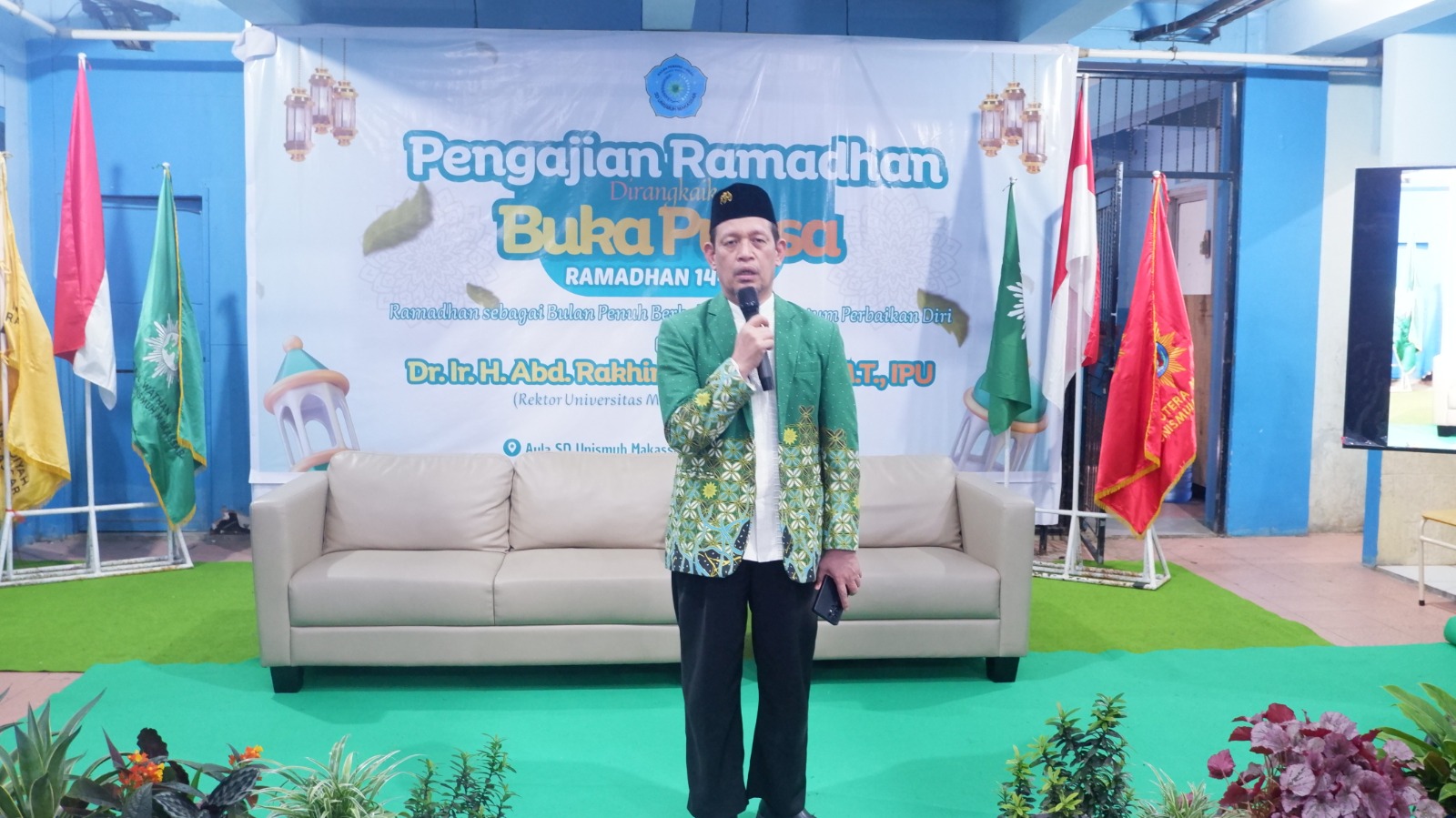 Pernyataan itu disampaikan Abd Rakhim Nanda saat memberikan tausiyah dalam kegiatan buka puasa bersama yang digelar Lab School SD Unismuh Makassar, Selasa, 10 Maret 2026. Kegiatan tersebut berlangsung dalam suasana hangat dan penuh kekeluargaan, melibatkan murid, orangtua, guru, serta pimpinan lembaga pendidikan di lingkungan Unismuh Makassar.