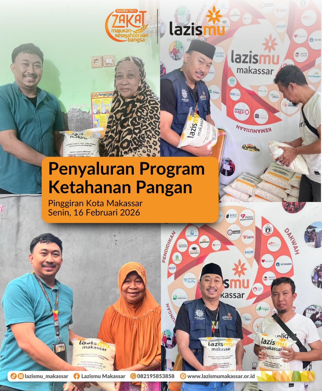 KHITTAH.CO, Makassar — Lazismu Makassar kembali menunjukkan komitmennya dalam menghadirkan manfaat nyata bagi masyarakat. Melalui program Gerakan Ketahanan Pangan, Lazismu menyalurkan bantuan beras kepada warga kurang mampu di sejumlah wilayah pinggiran Kota Makassar, Senin, 16 Februari 2026.