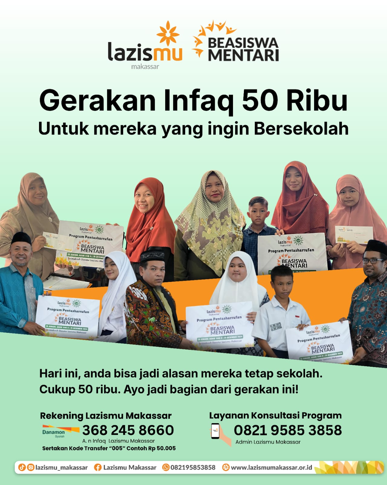 Manager Lazismu Makassar Muhammad Imaduddin menyampaikan bahwa program ini bukan hanya sekadar bantuan finansial, tetapi juga bentuk kepedulian dan investasi jangka panjang dalam pembangunan sumber daya manusia.