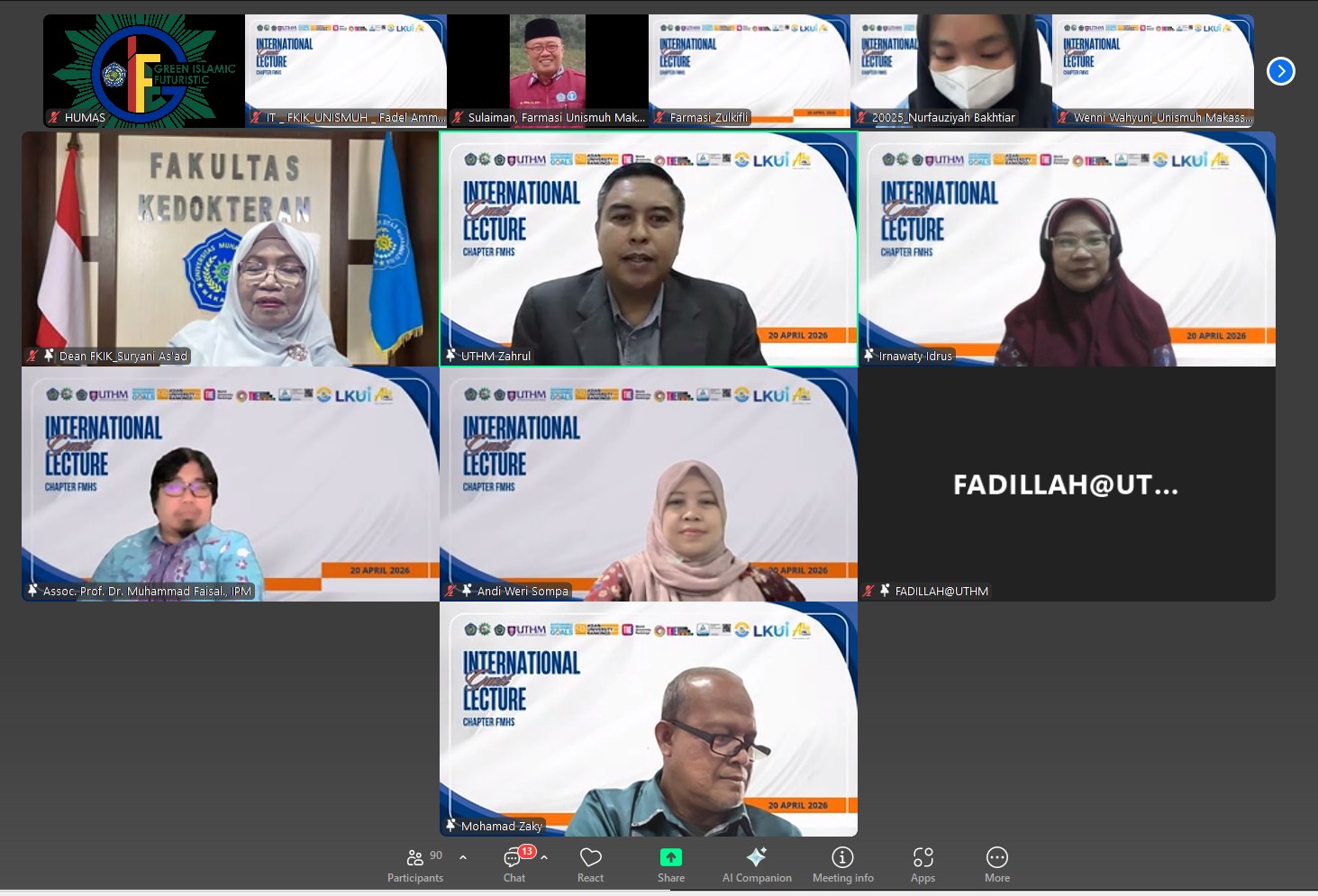 Kegiatan yang dimoderatori oleh Dr. Irnawati tersebut merupakan kolaborasi Fakultas Kedokteran dan Ilmu Kesehatan (FKIK) serta Fakultas Teknik Unismuh Makassar dengan Universiti Tun Hussein Onn Malaysia (UTHM). Sejumlah narasumber dihadirkan, di antaranya Associate Professor Dr. Muhammad Faisal, Dr. dr. Andi Weri Sompa, serta Prof. Dr. Muhammad Zaki bin Noh.