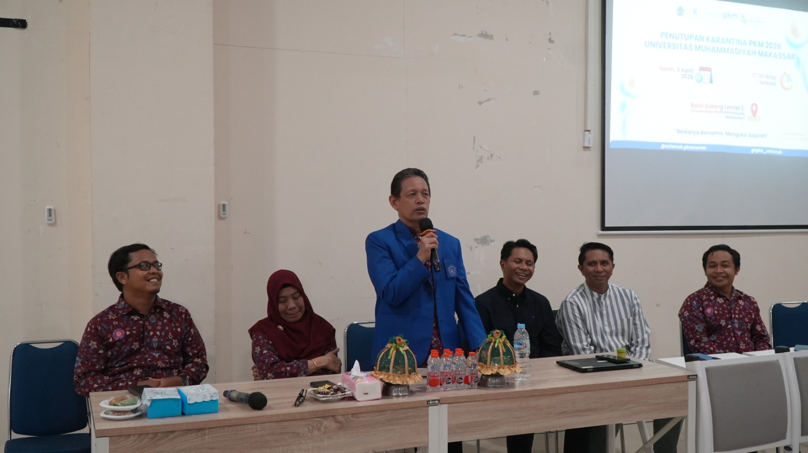 KHITTAH.CO, MAKASSAR – Rektor Universitas Muhammadiyah (Unismuh) Makassar menutup rangkaian karantina Program Kreativitas Mahasiswa (PKM) 2026 di Aula Lantai 2 Balai Sidang Muktamar Kampus Unismuh Makassar, Senin, 6 April 2026. Kegiatan yang berlangsung sejak Sabtu, 4 April 2026, itu menjadi bagian dari upaya intensif kampus dalam menyiapkan proposal-proposal terbaik untuk kompetisi PKM tingkat nasional.