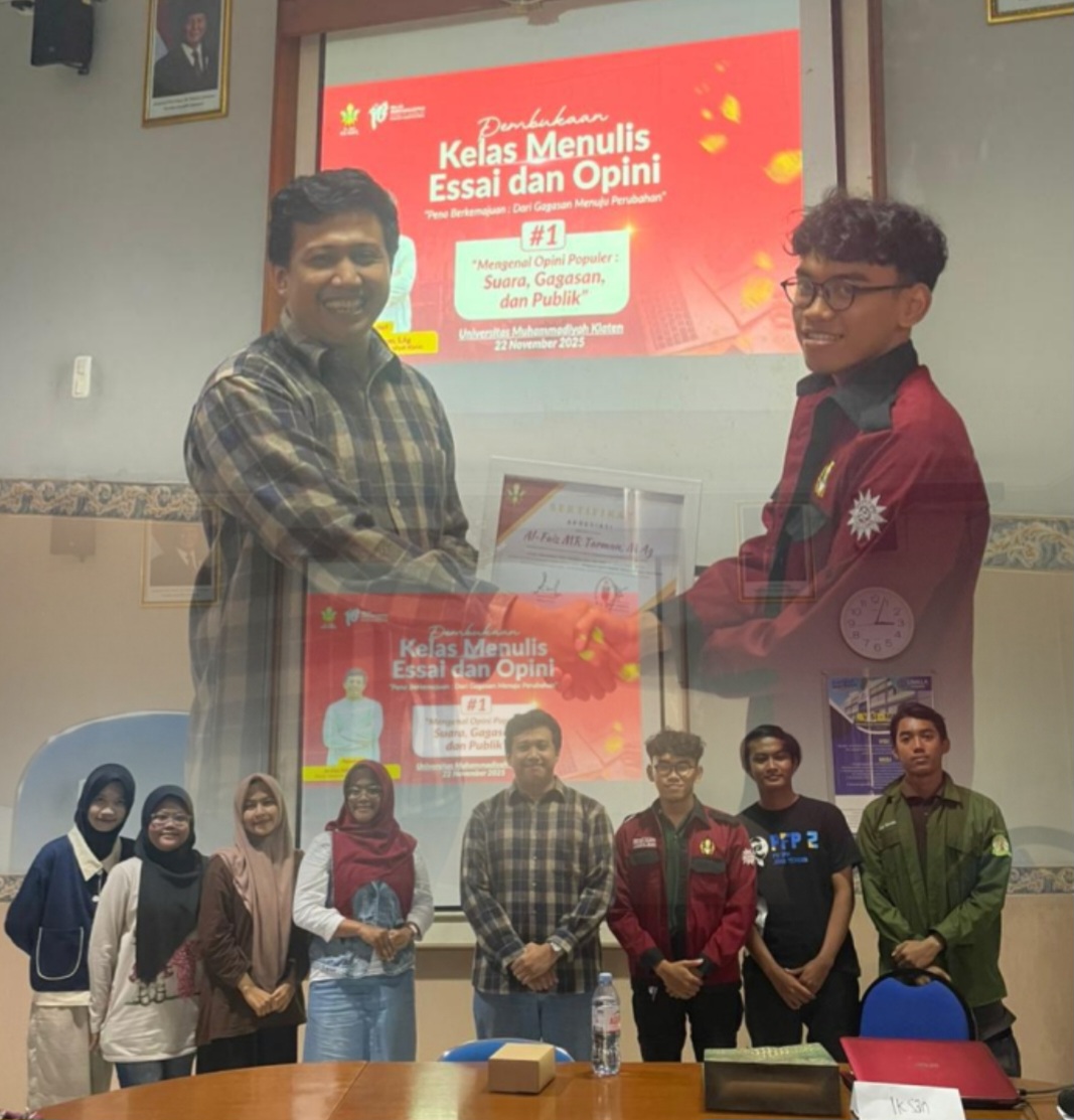 KHITTAH.CO, KLATEN — Dialektika hangat antara narasumber dan belasan peserta mewarnai pembukaan Kelas Menulis Esai dan Opini bertema “Pena Berkemajuan: Dari Gagasan Menuju Perubahan” yang digelar Pimpinan Komisariat Ikatan Mahasiswa Muhammadiyah (PK IMM) An-Nahl di Universitas Muhammadiyah Klaten, Sabtu, 22 November 2025.