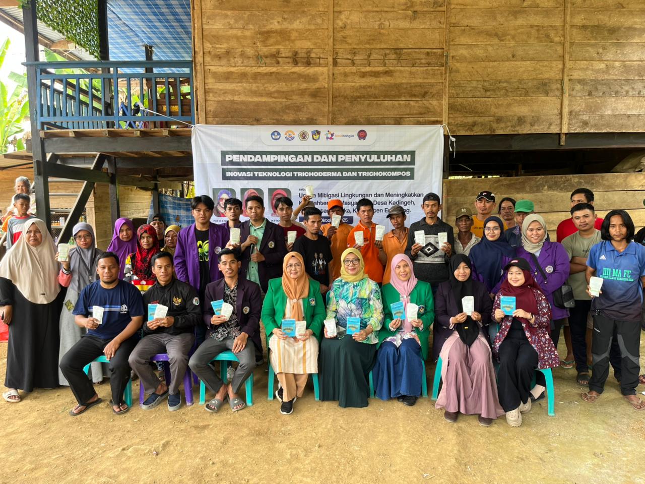 Pendampingan dan Penyuluhan Inovasi Teknologi Trichoderma dan Trichokompos dihadiri oleh anggota Kelompok Tani dan Remaja Peduli Lingkungan, mitra Pemerintah Desa Kadingeh, mahasiswa UNIMEN serta masyarakat sekitar.