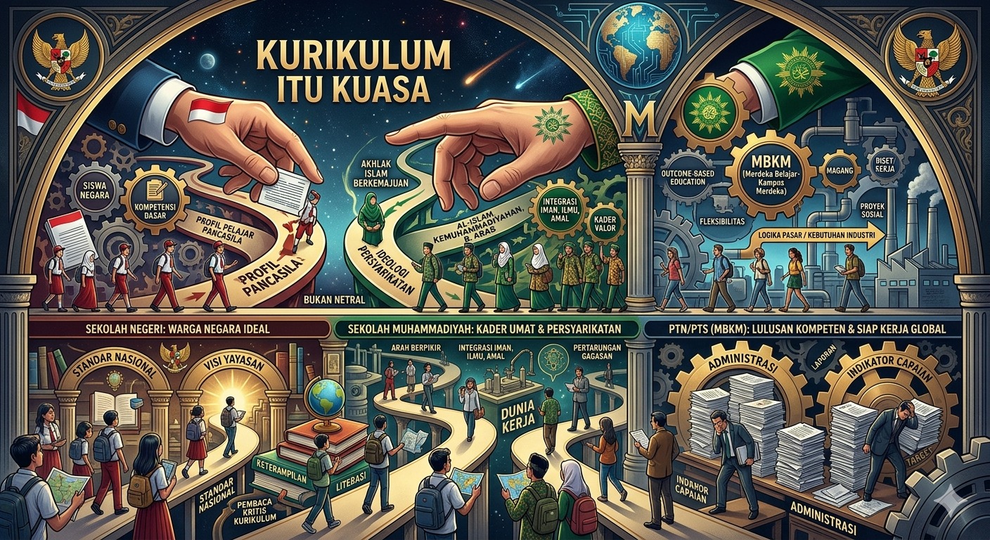 Berbeda dengan itu, sekolah Muhammadiyah tidak berhenti pada capaian akademik semata. Ada lapisan ideologis yang lebih tegas, yaitu pembentukan karakter Islam yang berkemajuan. Kurikulum tambahan seperti Al-Islam, Kemuhammadiyahan, dan Bahasa Arab menjadi identitas khas. Di sinilah kurikulum menjadi alat pembentukan identitas kolektif, bukan hanya individu yang cerdas, tetapi juga individu yang terikat pada nilai gerakan.