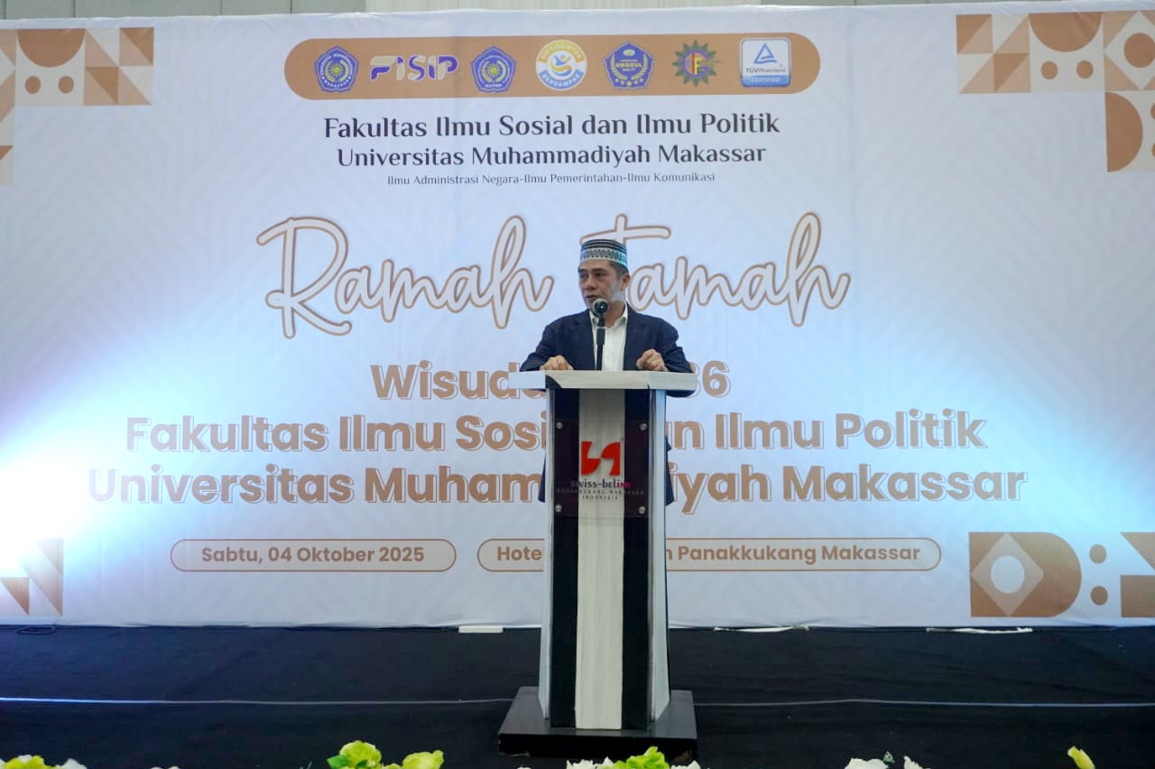 KHITTAH.CO, Makassar — Suasana hangat dan penuh kebersamaan menyelimuti Malam Ramah Tamah Wisuda ke-86 Fakultas Ilmu Sosial dan Ilmu Politik (FISIP) Universitas Muhammadiyah Makassar, yang digelar di Swiss-Belinn Hotel Panakkukang, Sabtu, 4 Oktober 2025 malam.