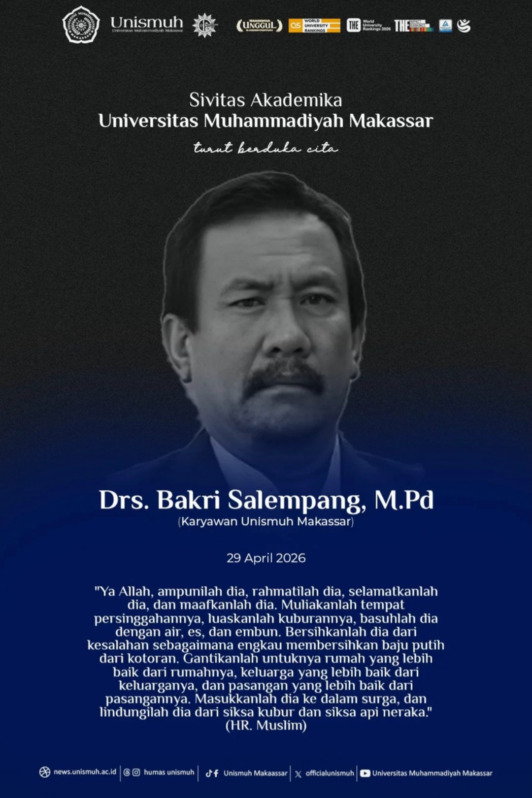 Kabar duka itu datang dengan tenang, tetapi bagi saya pribadi, tentunya meninggalkan rasa kehilangan yang dalam. Pada Rabu, 29 April 2026, Drs. H. Bakri Salempang, M.Pd. wafat di Makassar, dan dimakamkan pada Kamis, 30 April 2026 di Pattallassang, Kabupaten Gowa.
