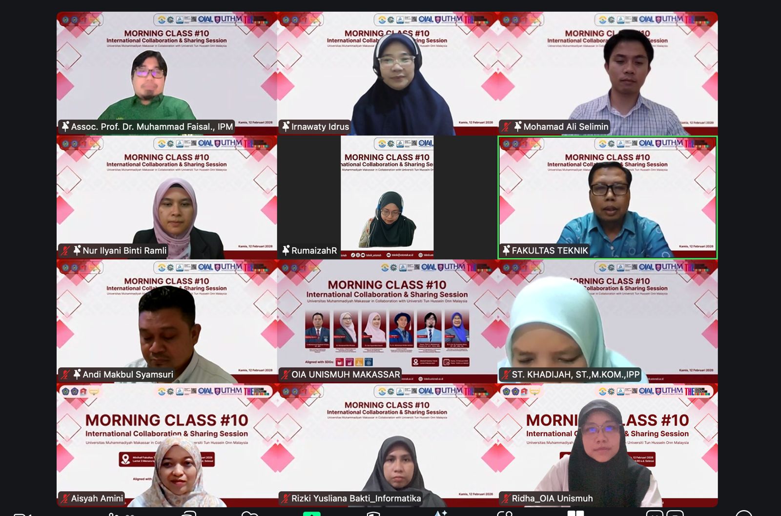 Khittah.co,Makassar — Fakultas Teknik Universitas Muhammadiyah (Unismuh) Makassar kembali memperkuat jejaring internasional melalui kegiatan Morning Class #10: International Collaboration & Sharing Session bersama Universiti Tun Hussein Onn Malaysia (UTHM). Kegiatan yang berlangsung secara hibrida, Kamis, 12 Februari 2026, di Minihall Fakultas Teknik Lantai 3 Menara Iqra ini diikuti dosen dan mahasiswa dari kedua perguruan tinggi.
