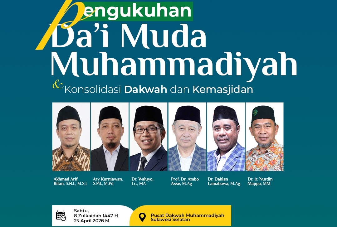 Makassar – Pimpinan Wilayah Muhammadiyah Sulawesi Selatan (PWM Sulsel) akan mengukuhkan 500 da’i muda hasil program Sekolah Tabligh Angkatan Kedua di Pusat Dakwah Muhammadiyah (Pusdam) Sulsel, Jalan Perintis Kemerdekaan Km 10, Makassar, Sabtu, 25 April 2026.