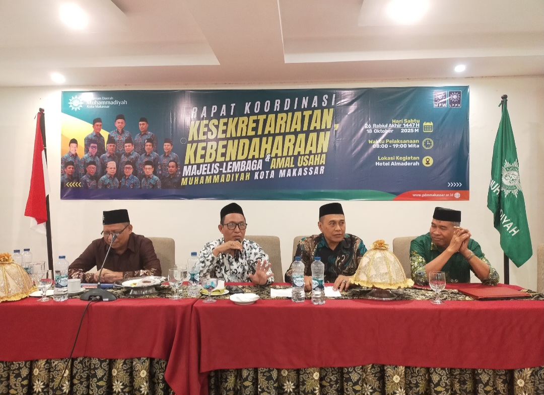 KHITTAH.CO, MAKASSAR — Pimpinan Daerah Muhammadiyah (PDM) Kota Makassar kembali menggelar rapat koordinasi kesekretariatan dan kebendaharaan yang diikuti seluruh Majelis, Lembaga, serta Amal Usaha Muhammadiyah se-Kota Makassar. Kegiatan berlangsung di Hotel Almadera, Jalan Somba Opu, Sabtu, 18 Oktober 2025.