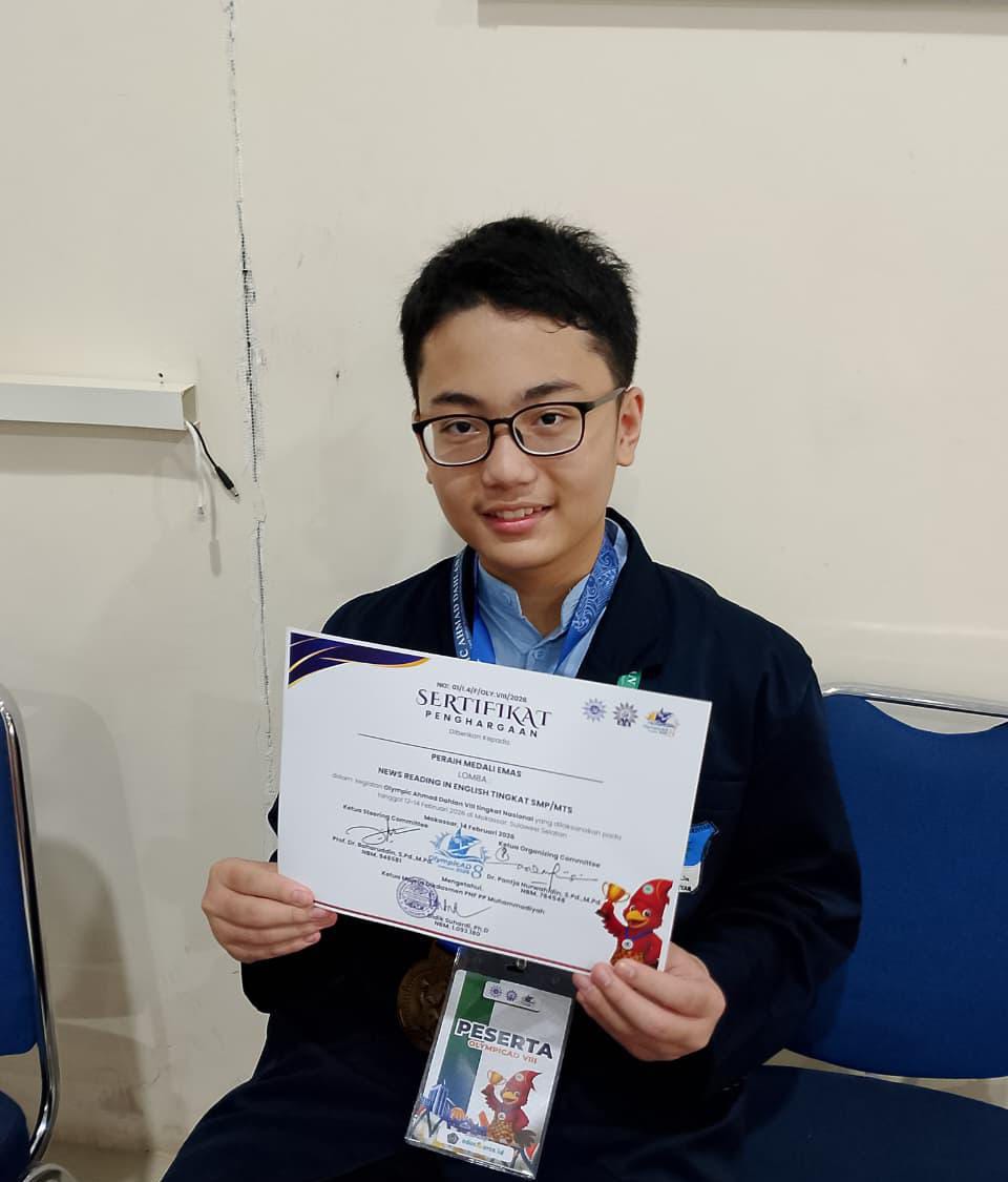 KHITTAH.CO, MAKASSAR – Alvaro Ezra Zagikusuma, siswa SMP Muhammadiyah Darul Arqam Karanganyar, meraih juara 1 cabang lomba News Reading tingkat SMP pada ajang Olimpiade Ahmad Dahlan (OlympicAD) VIII. Kompetisi tersebut digelar di Universitas Muhammadiyah Makassar (Unismuh), Kota Makassar, Sulawesi Selatan, Kamis–Jumat, 12–14 Februari 2026.
