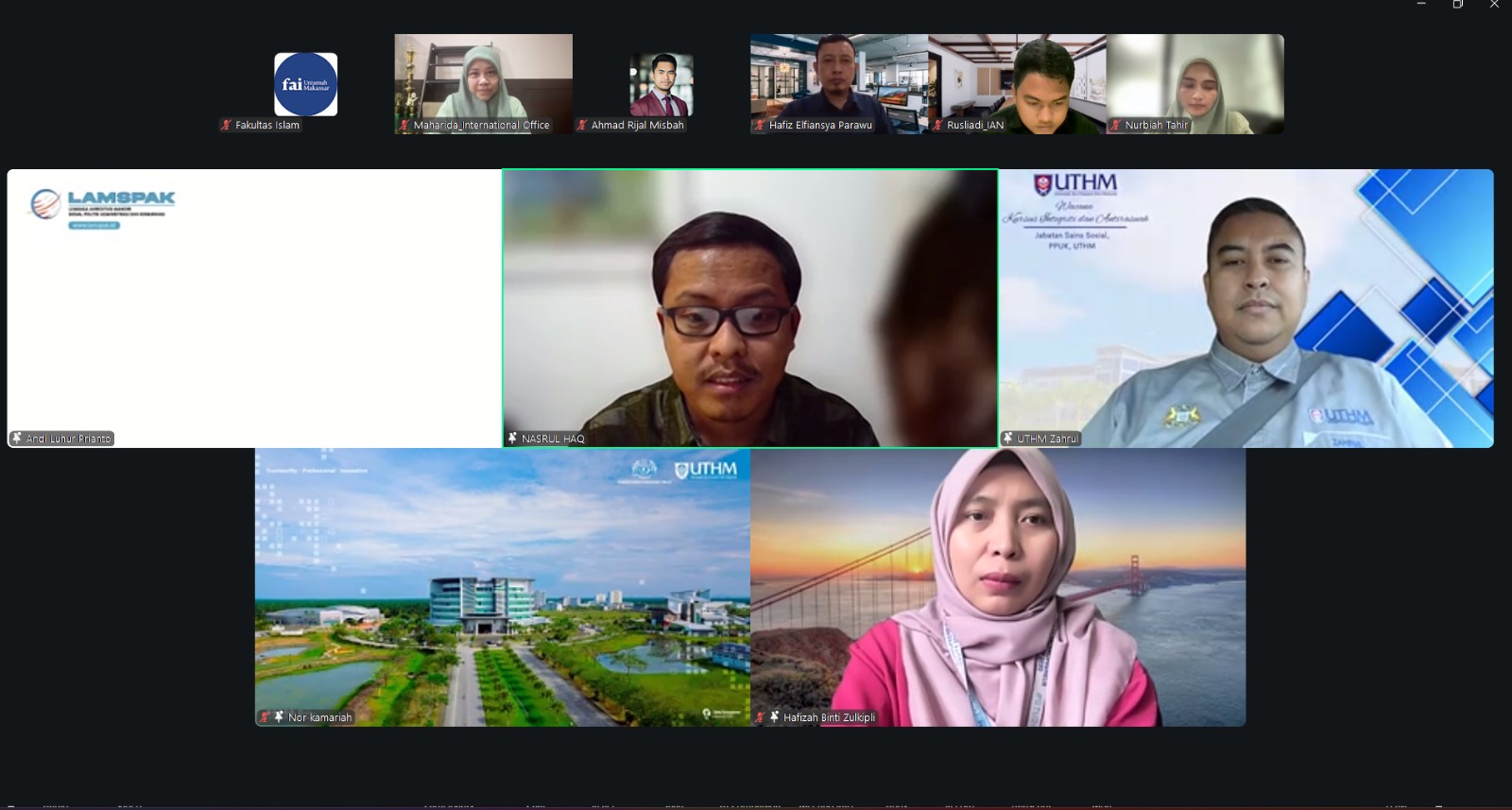 Tiga akademisi dari UTHM hadir sebagai pemateri dalam forum ilmiah tersebut, yakni Dr. Hafizah Binti Zulkipli, Dr. Nor Kamariah Binti Kamaruddin, dan Prof. Madya Dr. Fadillah Binti Ismail. Kegiatan dipandu oleh Wakil Dekan I FISIP Unismuh Makassar, Nasrul Haq, S.Sos., MPA.