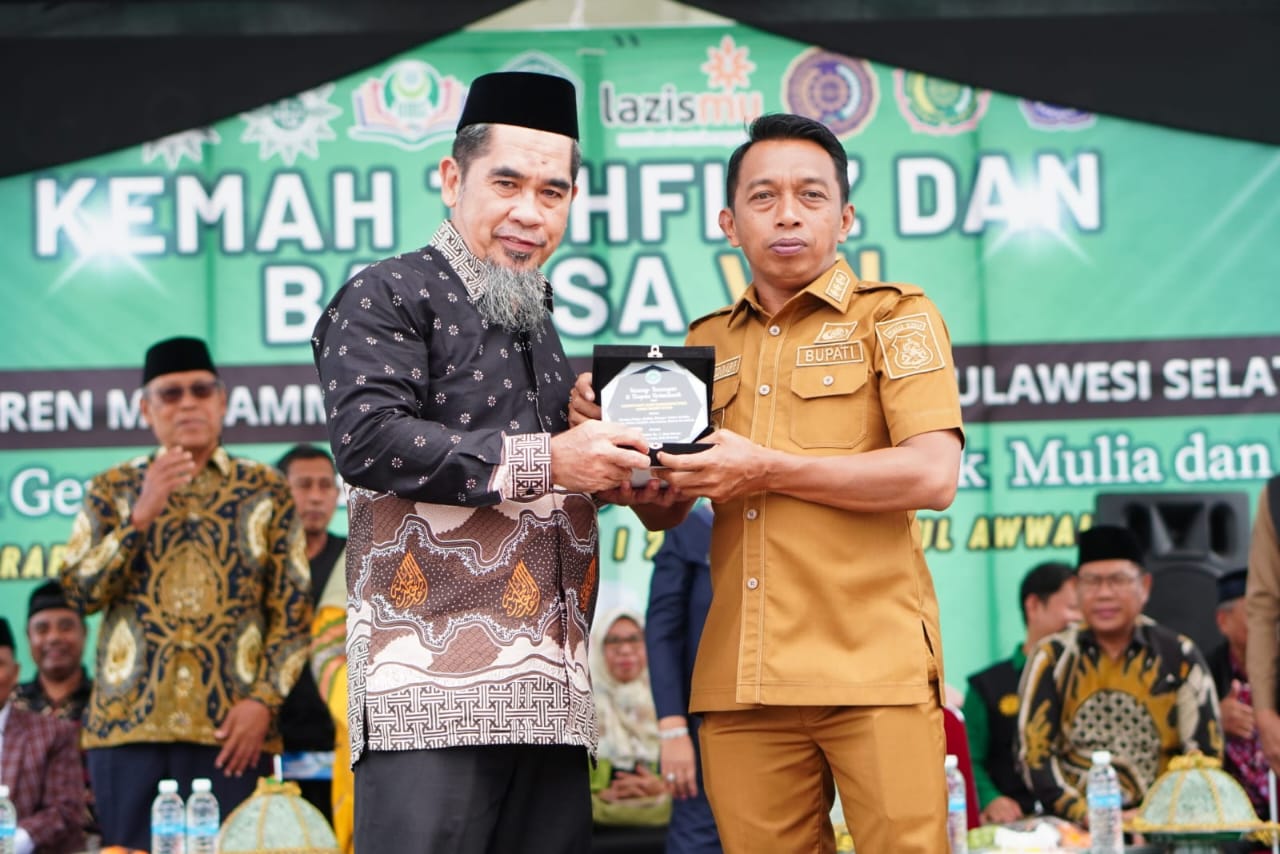 KHITTAH.CO, SIDRAP – Pesantren Darul Arqam Muhammadiyah Punnia Pinrang memberikan kenang-kenangan kepada Bupati Sidrap sebagai bentuk penghargaan dan terima kasih atas dukungan penuh Pemerintah Kabupaten Sidrap dalam penyelenggaraan Kemah Tahfiz dan Bahasa VIII, 13–16 September 2025.