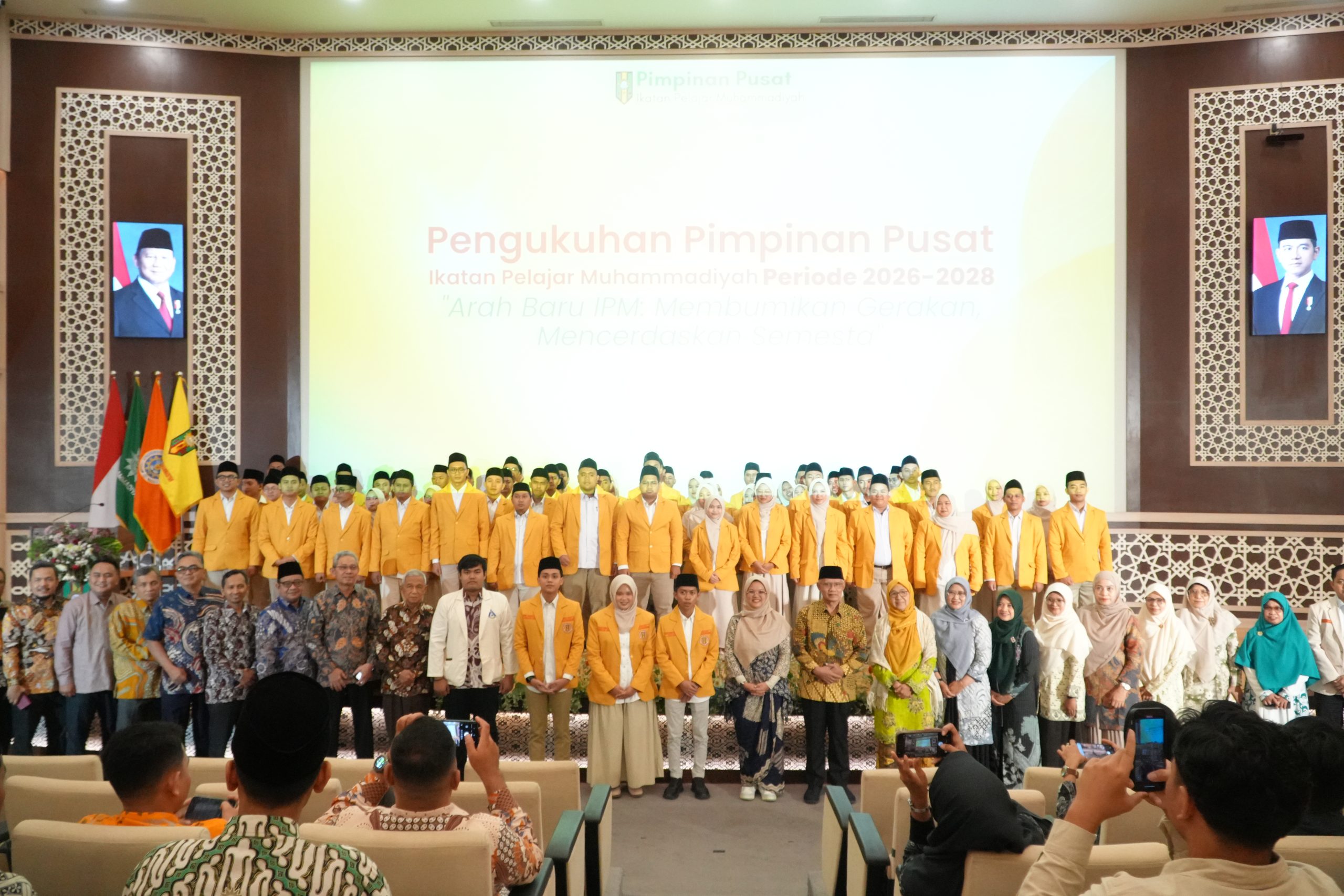 KHITTAH.CO, YOGYAKARTA — Pimpinan Pusat Ikatan Pelajar Muhammadiyah (PP IPM) periode 2026-2028 resmi dikukuhkan pada Ahad, 12 April 2026, di Amphitarium Lantai 9 Gedung KH Ahmad Dahlan, Kampus 4 Universitas Ahmad Dahlan, Yogyakarta. Pengukuhan ini menandai dimulainya kepemimpinan baru IPM di tengah tantangan perubahan generasi, percepatan teknologi digital, serta kebutuhan akan gerakan pelajar yang lebih dekat dengan realitas sosial.