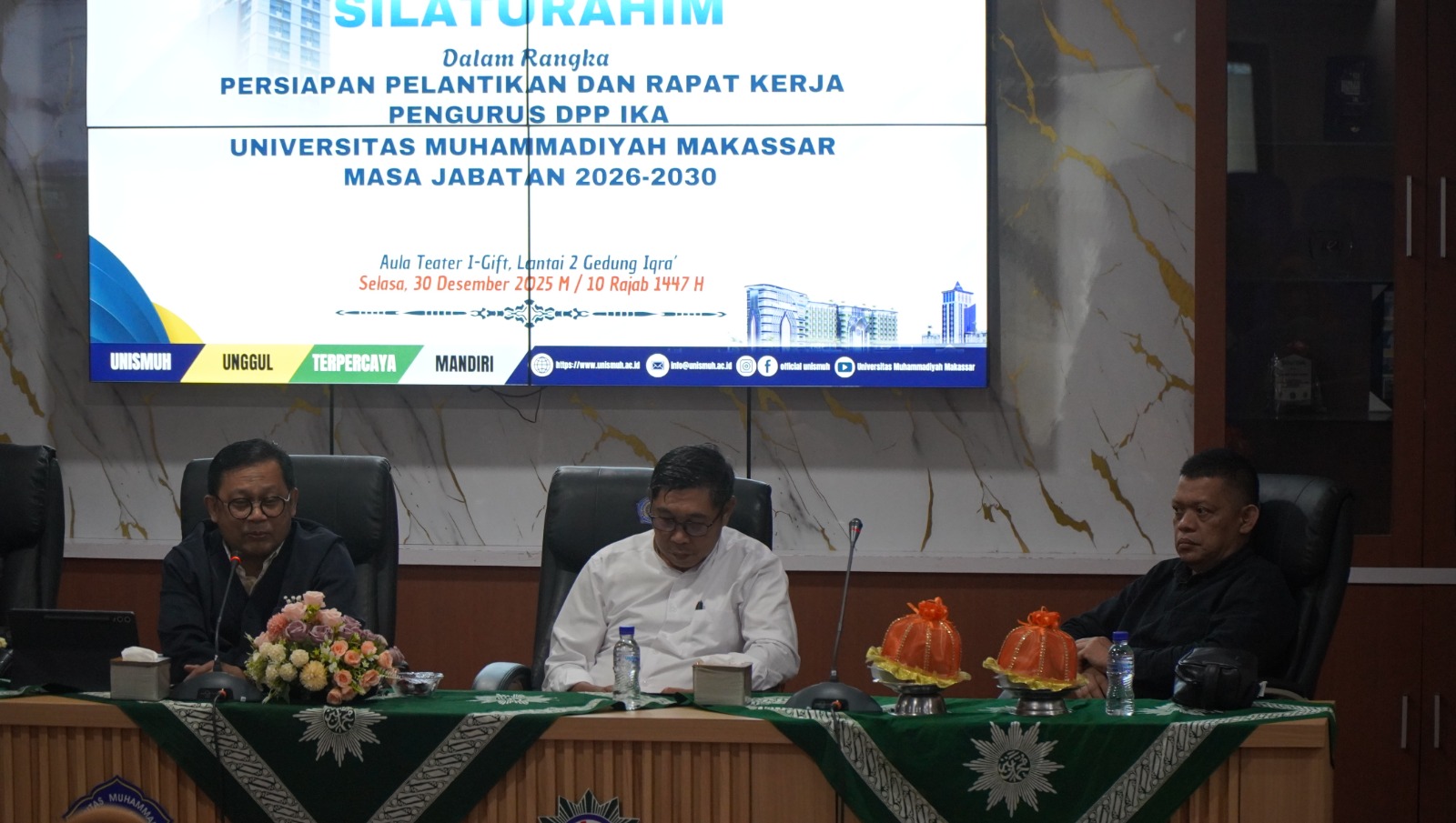 KHITTAH.CO, MAKASSAR — Ikatan Keluarga Alumni (IKA) Universitas Muhammadiyah (Unismuh) Makassar menggelar Silaturahmi yang dirangkaikan dengan konsolidasi organisasi dan penetapan kepengurusan baru. Selasa, 30 Desember 2025. Kegiatan yang digelar di Ruang Teater I-GIFT Lantai 2 Gedung Menara Iqra Unismuh Makassar ini menjadi momentum penguatan jejaring alumni yang jumlahnya diperkirakan telah melampaui 100 ribu orang.