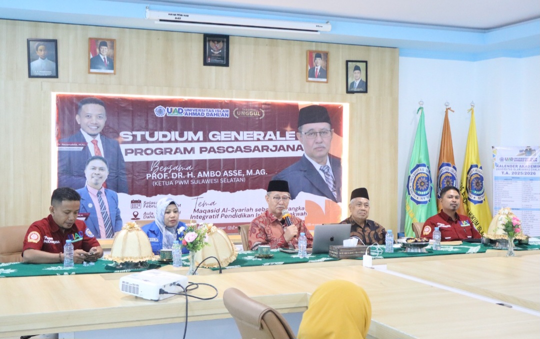KHITTAH.CO, SINJAI — Program Pascasarjana Universitas Islam Ahmad Dahlan (UIAD) Sinjai sukses menggelar Studium Generale Semester Genap Tahun Akademik 2025/2026 bersama Ketua Pimpinan Wilayah Muhammadiyah (PWM) Sulawesi Selatan, Prof. Dr. H. Ambo Asse, M.Ag., bertempat di Aula K.H. Ahmad Dahlan UIAD Sinjai, Selasa, 10 Februari 2026.