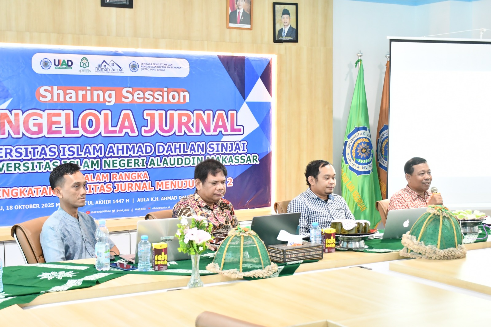KHITTAH.CO, SINJAI — Universitas Islam Ahmad Dahlan (UIAD) Sinjai melalui Rumah Jurnal yang berada di bawah naungan Lembaga Penelitian dan Pengabdian kepada Masyarakat (LP2M) menerima kunjungan dari Pengelola Rumah Jurnal UIN Alauddin Makassar, Sabtu, 18 Oktober 2025.