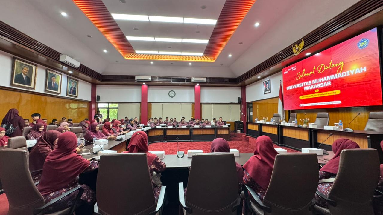 Khittah.co, Malang— Universitas Muhammadiyah Malang (UMM) menerima kunjungan studi tiru dari Universitas Muhammadiyah Makassar (Unismuh), Senin, 1 Desember 2025. Sebanyak 64 peserta yang terdiri dari unsur pimpinan fakultas, ketua program studi, serta pengelola lembaga menjadi bagian dari rombongan yang datang khusus untuk mempelajari berbagai program unggulan yang dikembangkan UMM.