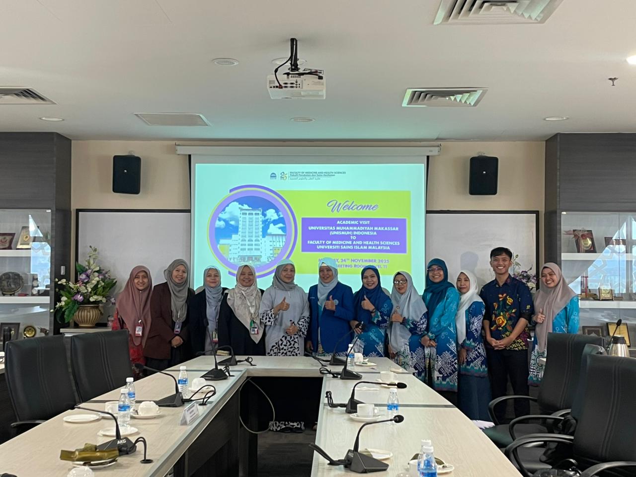 KHITTAH.CO, Makassar— Fakultas Kedokteran dan Ilmu Kesehatan Universitas Muhammadiyah Makassar (FKIK Unismuh) bersama Faculty of Medicine and Health Sciences (FPSK) Universiti Sains Islam Malaysia (USIM) menyepakati pengembangan student mobility program bagi mahasiswa tingkat sarjana (undergraduate). Kesepakatan ini dibahas dalam rangkaian agenda international benchmarking FKIK Unismuh di Kampus FPSK USIM, Nilai, Malaysia, 24 November 2025.