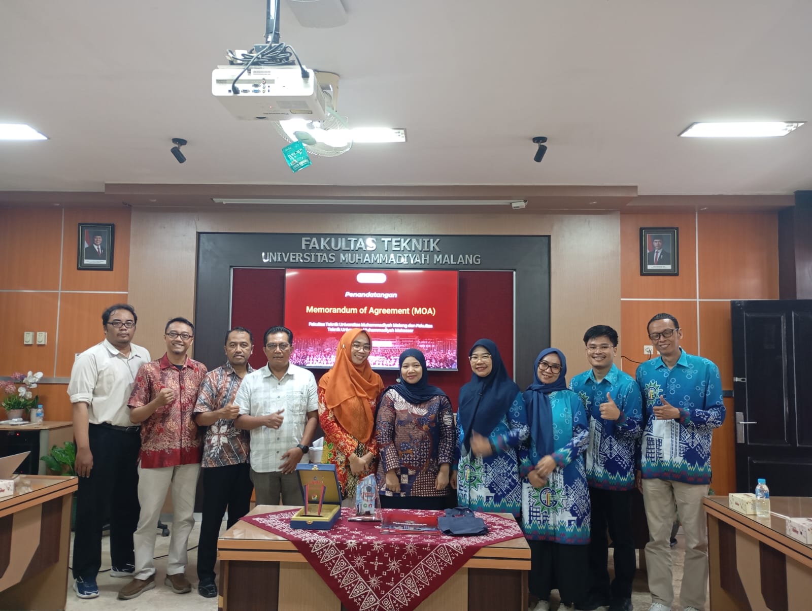 Rombongan diterima di Ruang Rapat Fakultas Teknik UMM oleh Dekan, Dr. Ir. Sulianto, MT, didampingi Wakil Dekan I Dr. Ir. Machmud Effendy, ST., M.Eng., serta Wakil Dekan II Ir. Shanty Kusuma Dewi, M.T., yang baru dilantik untuk periode 2025–2029. Pertemuan turut dihadiri ketua dan sekretaris program studi Informatika, Teknik Mesin, Teknik Sipil, Teknik Industri, Teknik Elektro, serta perwakilan PIC CoE Fakultas Teknik UMM.