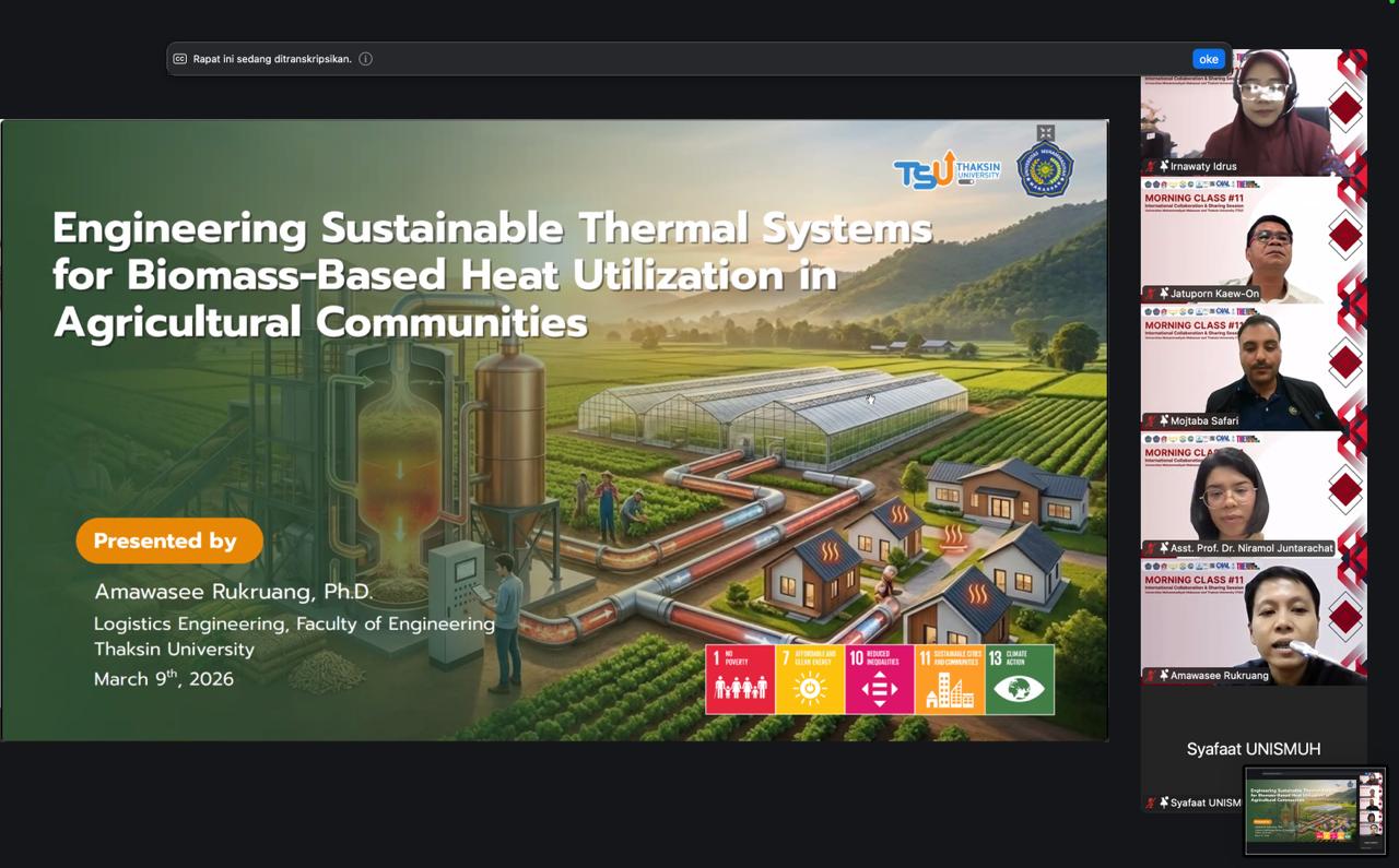 KHITTAH.CO, MAKASSAR — Universitas Muhammadiyah (Unismuh) Makassar melalui Fakultas Teknik menggelar kuliah tamu internasional bertajuk International Guest Lecture dalam rangka program International Collaboration and Sharing Session Morning Class #11. Kegiatan yang berlangsung secara daring melalui Zoom Meeting pada Senin, 9 Februari 2026, itu diikuti ratusan dosen dan mahasiswa dari kedua perguruan tinggi.