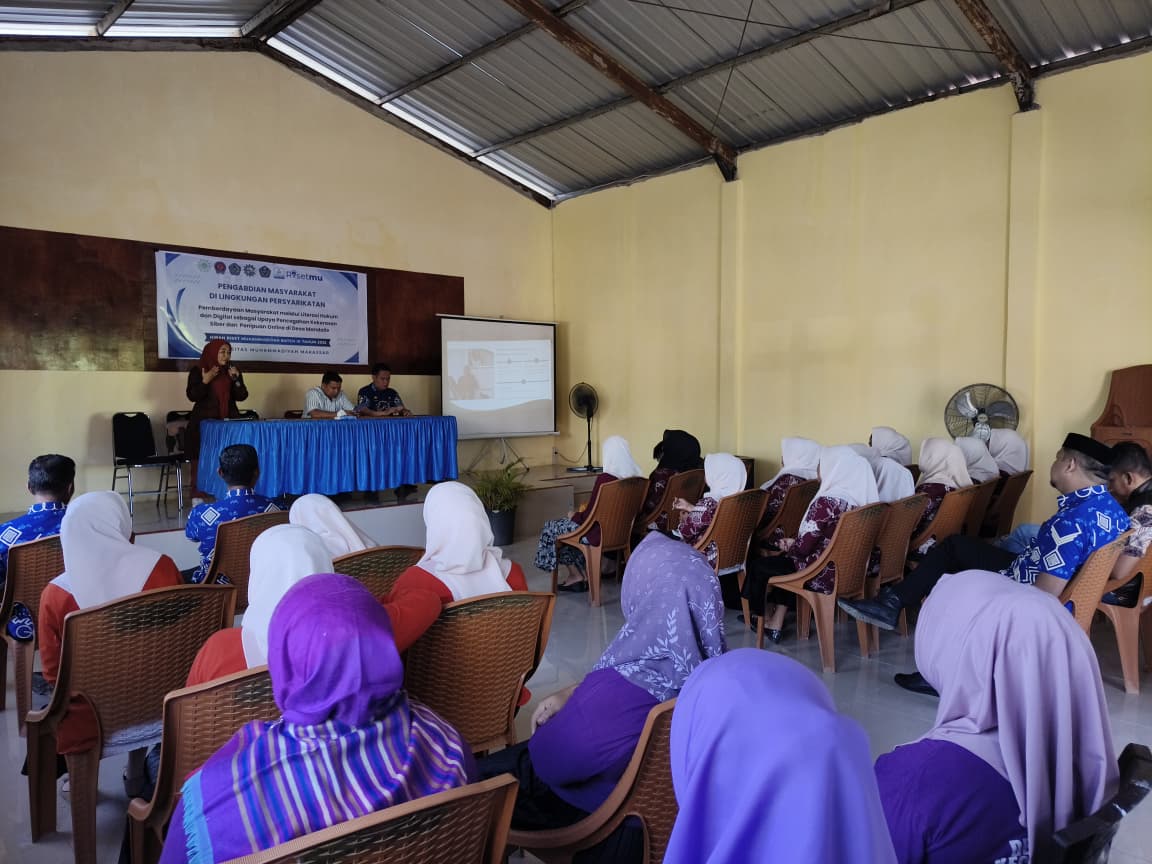 Kegiatan tersebut diikuti 25 peserta yang terdiri atas ibu rumah tangga dan aparat desa. Program diarahkan untuk meningkatkan pemahaman warga mengenai literasi hukum dan literasi digital, menyusul meningkatnya risiko kekerasan siber serta penipuan online yang kian sering terjadi di ruang digital.